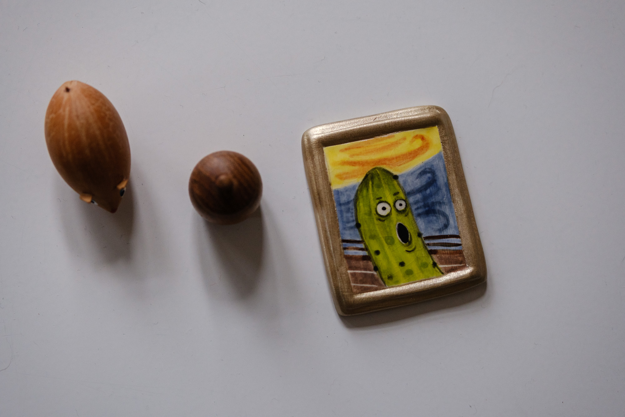 One time I was making ornaments for Christmas, and I forgot to attach the hook onto a tiny ceramic pickle. I ended up painting it and bringing it around in my pocket, filming silly stuff with it. I realised there are lots of people who love the same dorky, quirky things I do, like a “pocket pickle”.