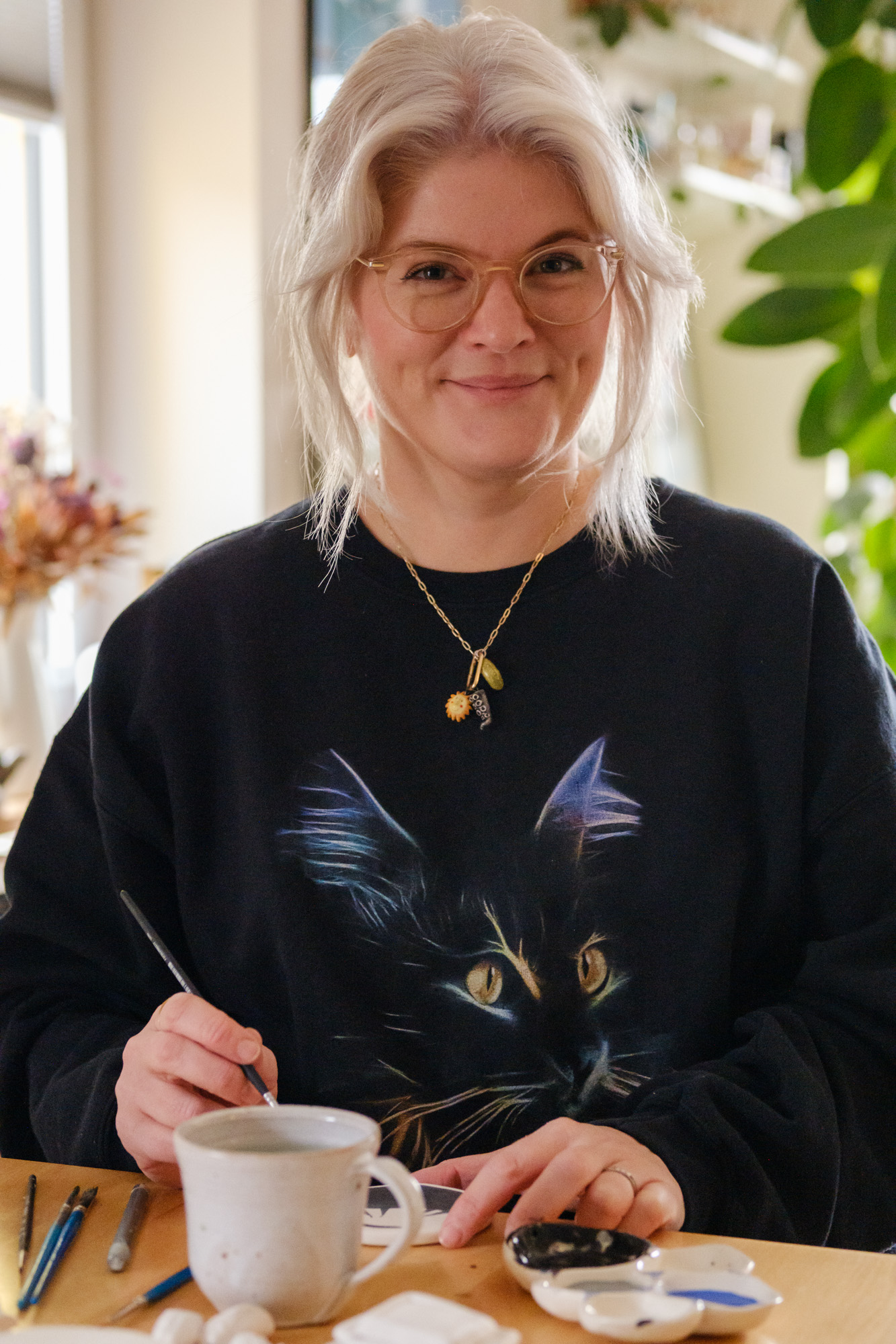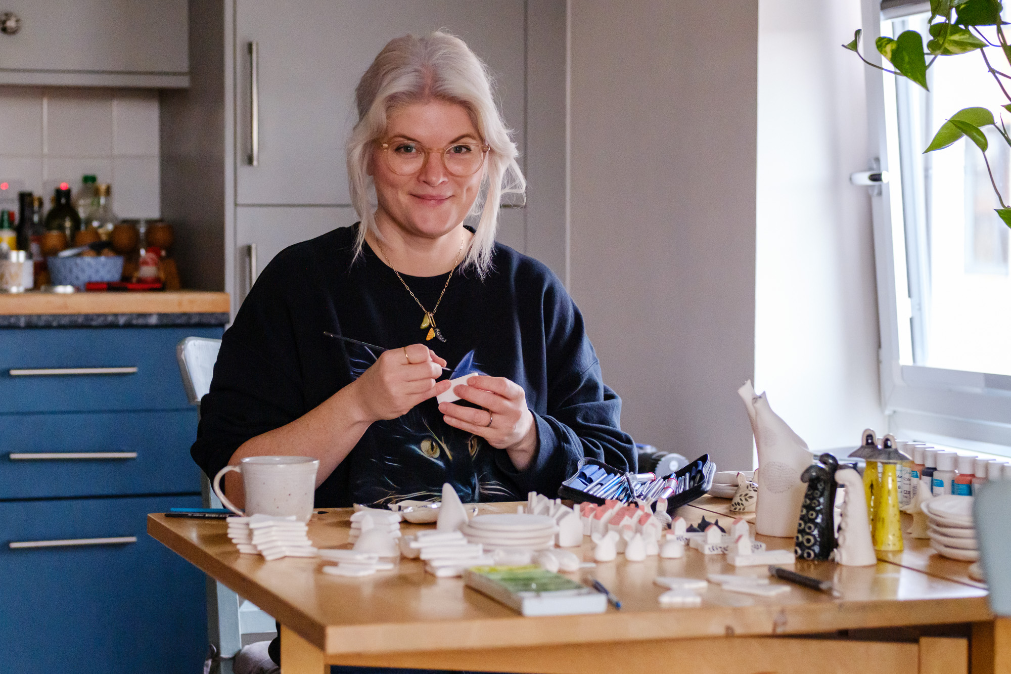 I also want to add a few non-ceramic things to my inventory – knitted scarves, 2D work, prints and maybe t-shirts. Ceramics will definitely remain the predominant thing, and I don’t want to scale to a point that I need to hire someone or outsource. I want to have seen everything through from start to finish. Even though I work many hours in the week, I’m not that stressed and my cat is my only employee (for moral support).