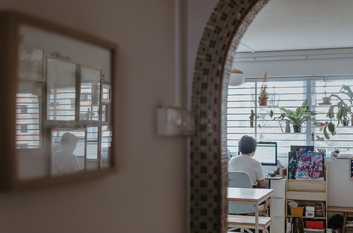 Her walls are filled with framed photos and sketches, her shelves lined with vintage knick-knacks in various shapes and colours. Look around her home studio and it is undeniable that Ly is intent on creating a space that helps her cultivate her craft.