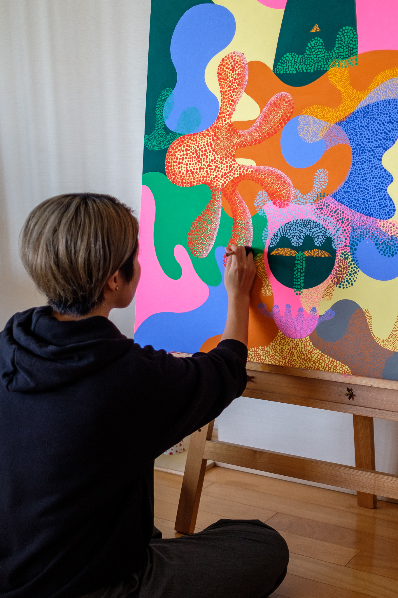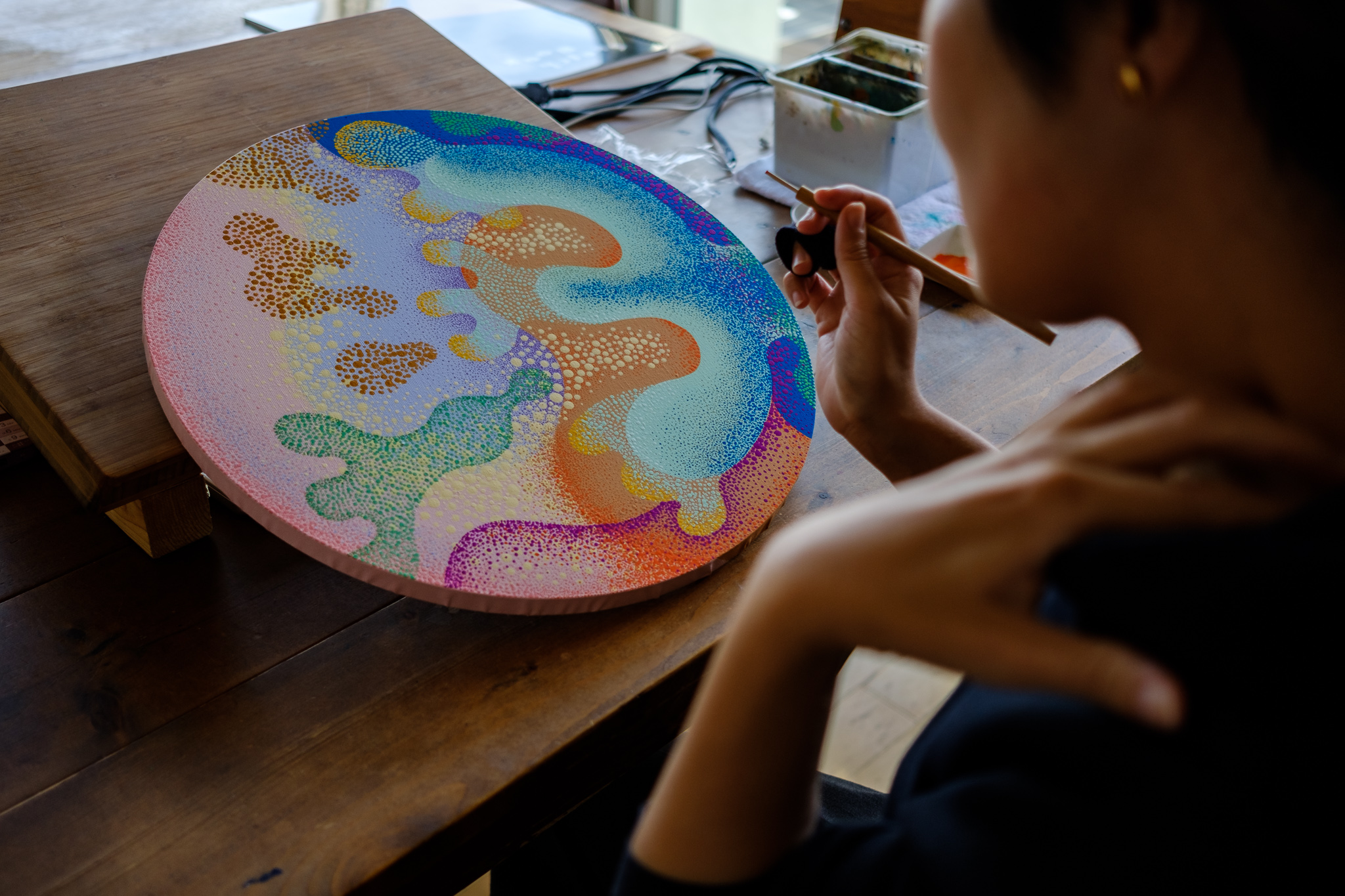 It started when I encountered the Aboriginal art of dot painting, that originated from the indigenous people of Australia. I think that must have been almost 10 years ago? It felt very different from what artists in Japan were doing at the time, so I decided to experiment with this style and see where it would lead me.